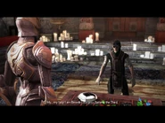 Siris encountered Benedict again in the Vault of Tears, with a number of gems atop a large stone. Siris reiterated his previous offer that Benedict might join him and the Rebellion. Benedict enquired what he might be paid in exchange for his services, Siris responding "freedom", to which Benedict replied "Freedom is cheap. Now luxury is hard to come by". Annoyed, Siris demanded that Benedict leaves his castle. Benedict went to leave, before quickly returning to grab a gem from atop the stone and then fled.