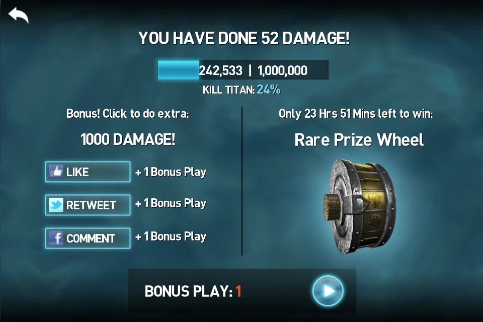 Players can add other players to their mob, or accept invitations to other mobs. Having extra people in the mob unlocks extras for each event. At the end of one round of an event, players can also Like (a Facebook feature), retweet (a Twitter feature), or comment on the event to gain bonuses (pictured).