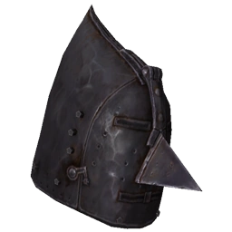 A monstrous helmet of dark origins, this enhances its wearer's health while reinforcing his shield. Also used by the Executioner. |