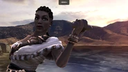 Shell is first introduced in Act I. When Siris opens a treasure chest in Larioth, Shell appears and beats him to it, taking a FireBrand from the chest and walking away. After Act I, she arrives at the resistance hideout in the merchant ship Christina, offering to trade with Siris and Isa. She reveals that the hideout's location had been used by smugglers for centuries and ironically will be selling the item that she stole from Siris in Act 1. Isa asks her how they could trust her, and Shell simply states that she has no love for the Deathless and that "Paying customers are more useful to [her] than dead ones."