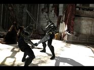 As Siris continues to converse with Kuuth, he is suddenly struck by a projectile, and finds himself engaged in battle with an assassin. Rather than duel, however, they instead fire upon him with a crossbow, forcing him to take cover. Although he is poisoned by the attack, he manages to stave off the effects with healing magic. The assassin -- revealed to be a woman who believes Siris is the God King -- is suddenly beset from the front by two mechanical golems, and is forced to fight from multiple angles. Despite having never done so, he finds that the situation seems familiar.