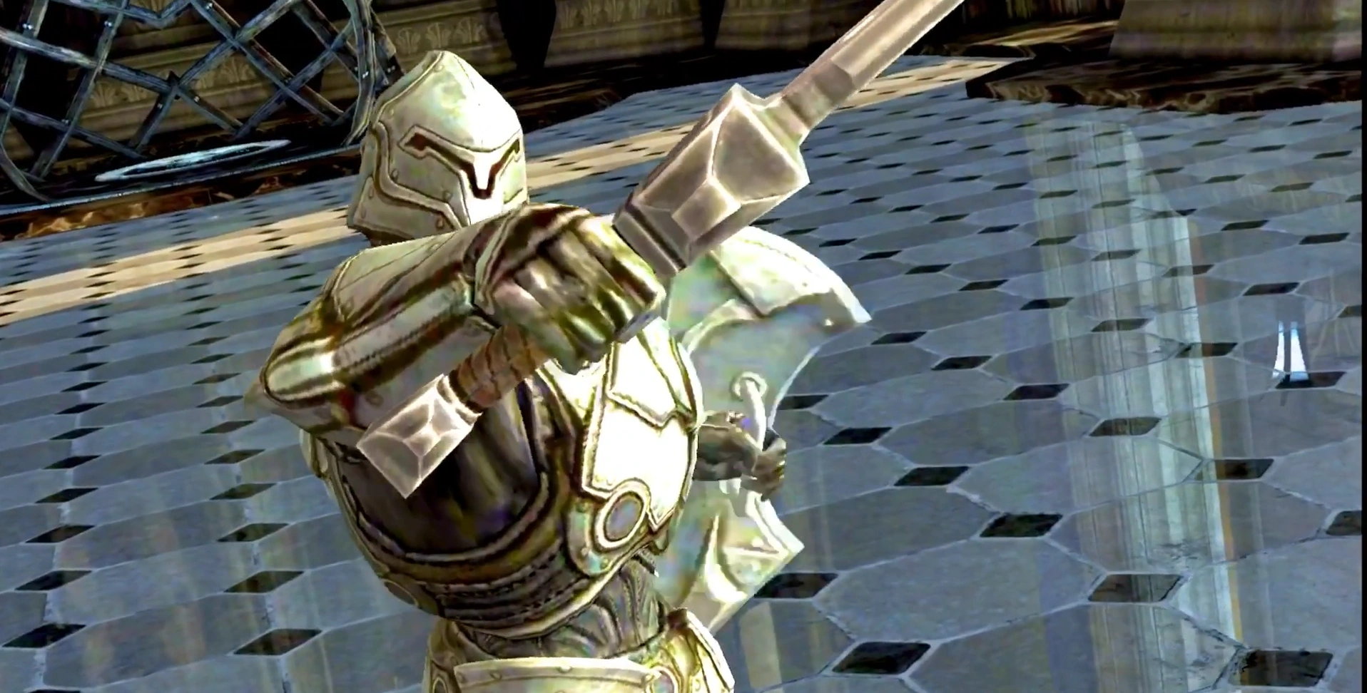 The player's character in the tutorial is represented as the Ancestor, who battles The Dark Knight. After following the prompts, they are disarmed, and stand idly as the God King gives a monologue before stabbing them with the Infinity Blade.